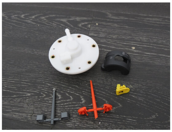 將金屬零配件埋入塑膠模具內再進行塑膠射出型製程。易崩牙的螺紋處常用金屬螺帽、螺絲埋入射出成型以增加產品螺紋強度避免崩牙。舌片、導電金屬片也時常使用此做法。 配件整合這環節是泓瑋實業努力培養的目標,不論是金屬螺帽、螺絲、鋁合金、鎂合金、沖壓、噴漆、烤漆等均有許多配合多年且品質良好的廠商可協助客戶端完成所需產品。